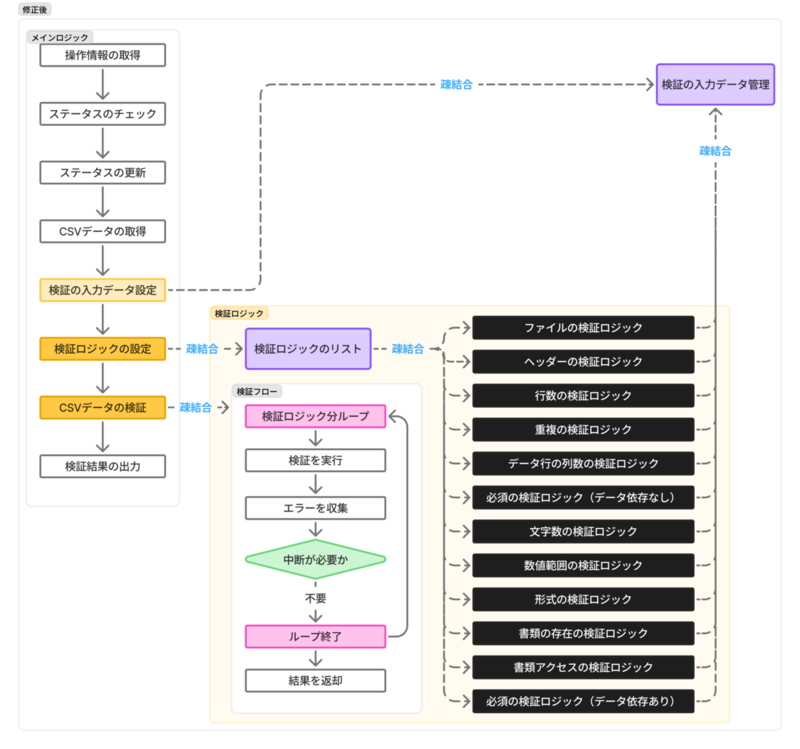 この記事では CSV ファイルの入力値を検証するコードを疎結合にする過程と考え方について記載しています。